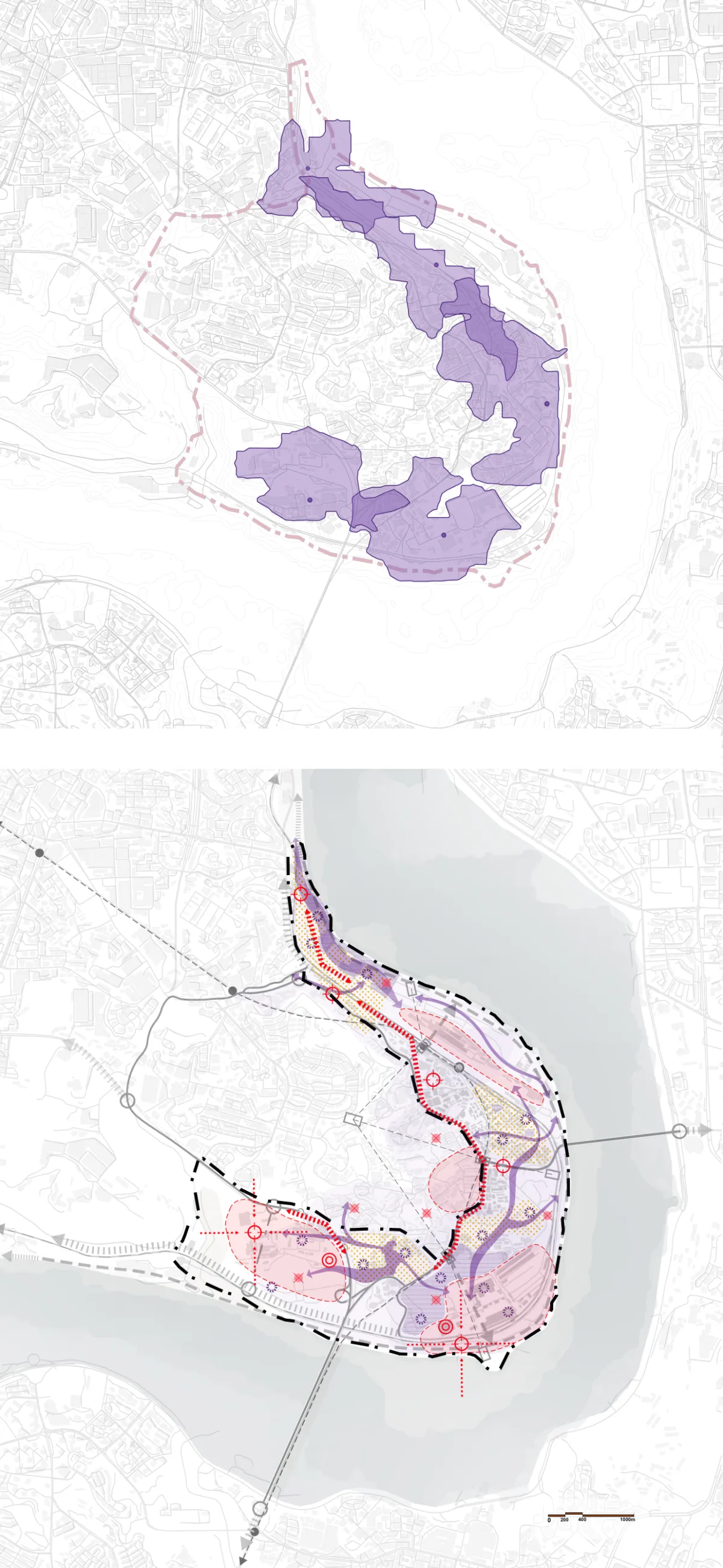 This project explores the adaptive transformation of Jiulong Peninsula, an old industrial site in the south of Chongqing, China. Developed in a 19-person team, the project began with research into themes such as ecological sustainability, circular economy, and digital innovation, followed by strategic interventions across urban and architectural scales.