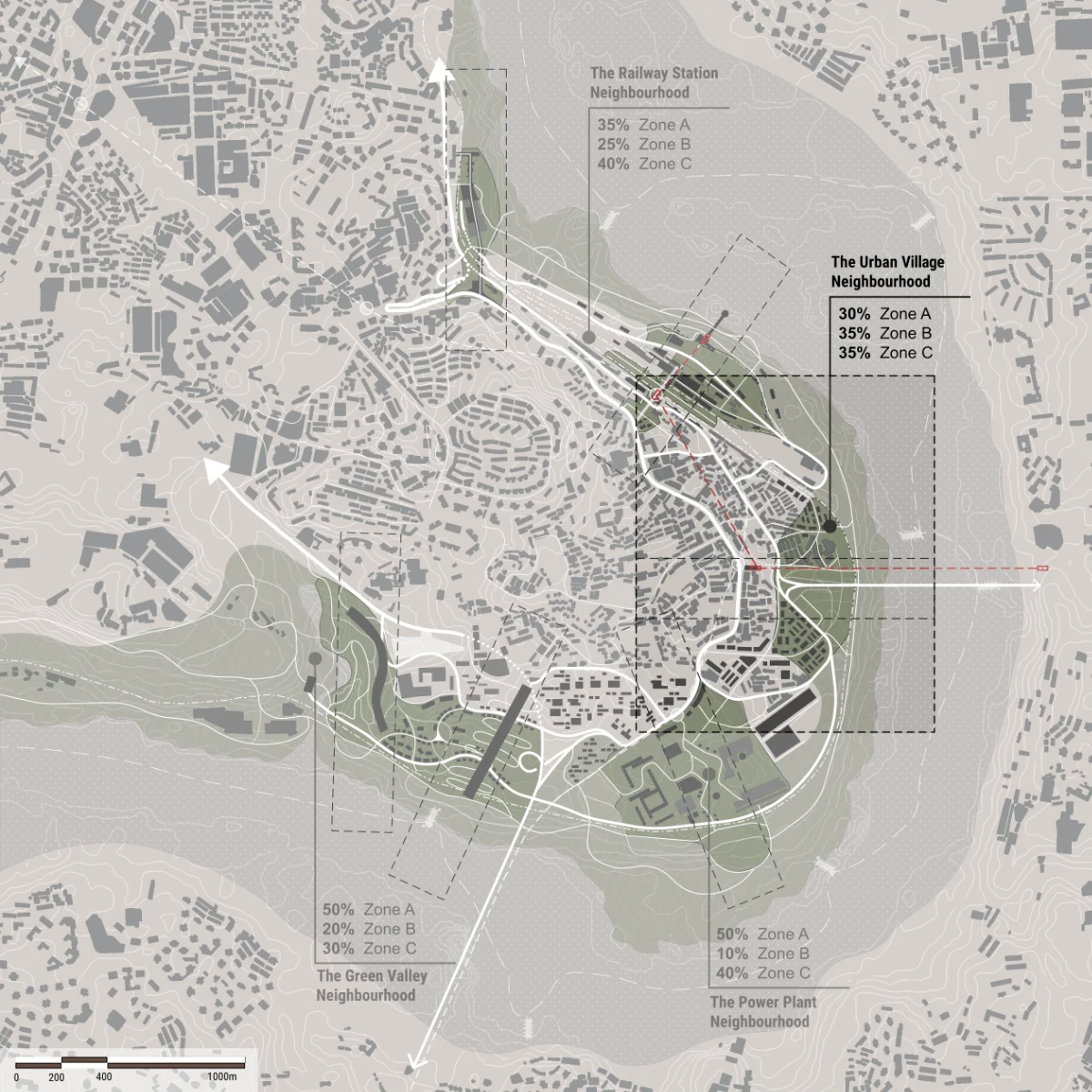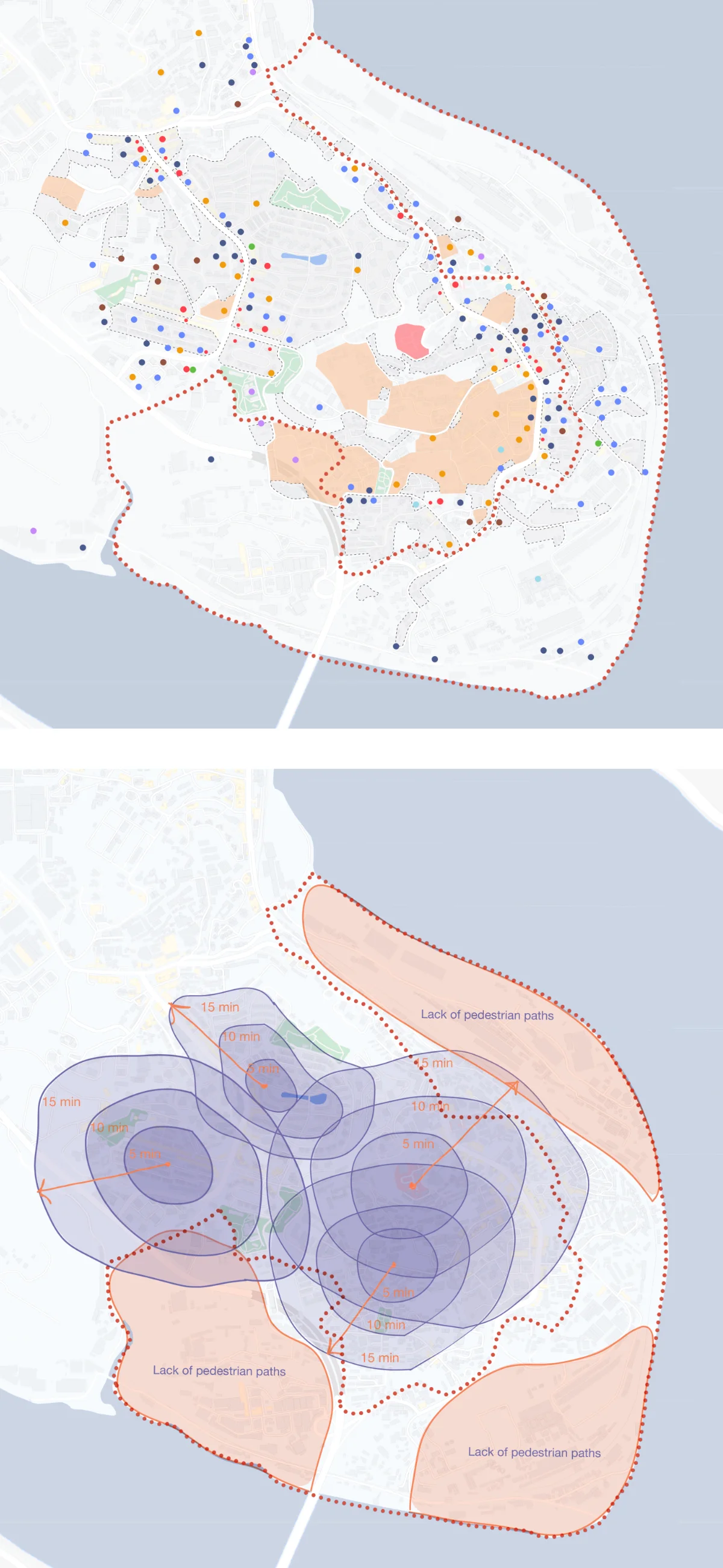 As part of a smaller subgroup, I first focused on the 15-Minute City concept, utilising open data and urban analytics to access accessibility and public services across the site. These findings, along with insights from other subgroups, subsequently informed my neighbourhood strategy, identifying key issues in the redevelopment of the abandoned residential zone. Proposed interventions involve new intergenerational living clusters with public green spaces, and cultural corridors to encourage community activities and engagement.