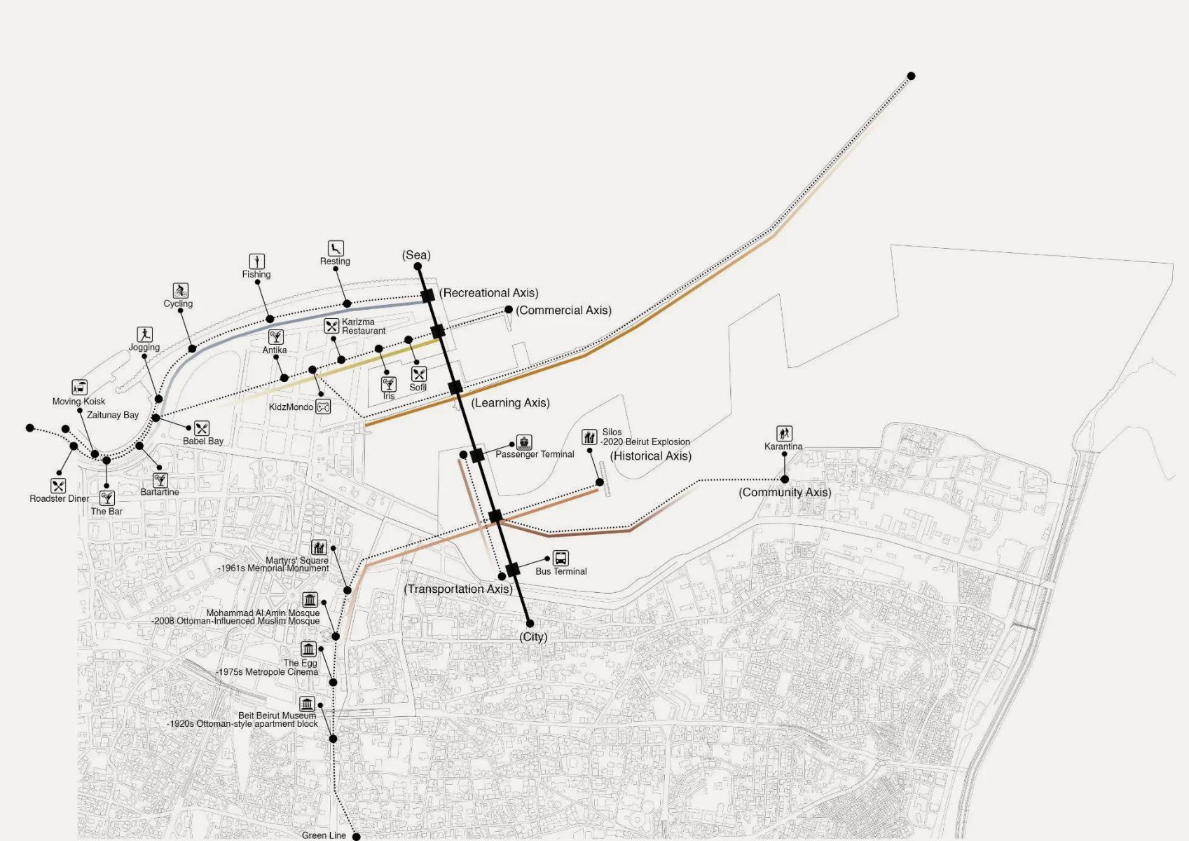 Through this process, we identified the Green Line and the Coastline as two major urban threads converging at the port, revealing an opportunity to reconnect Beirut’s collective memory with its social fabric.